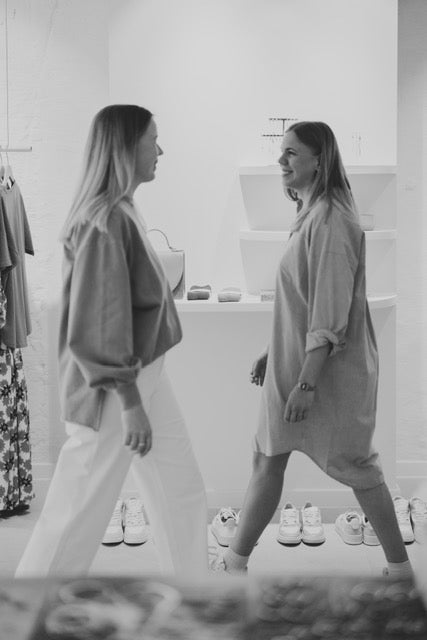 De naam TWEE staat voor het complementaire team dat wij, Justine en Zoe, vormen. Als twee zussen vullen wij mekaar aan, niet alleen qua stijl, maar ook qua karakter.