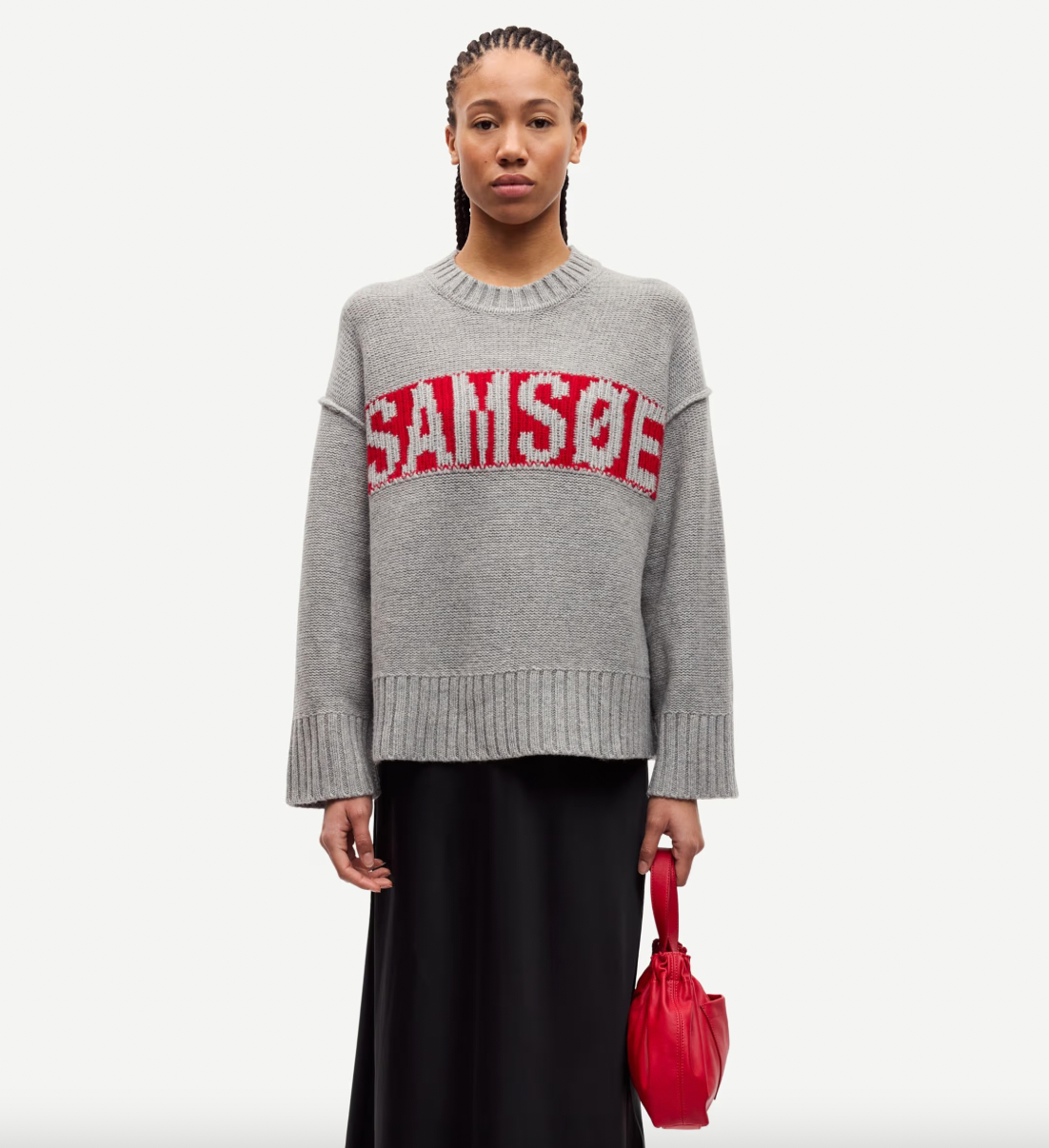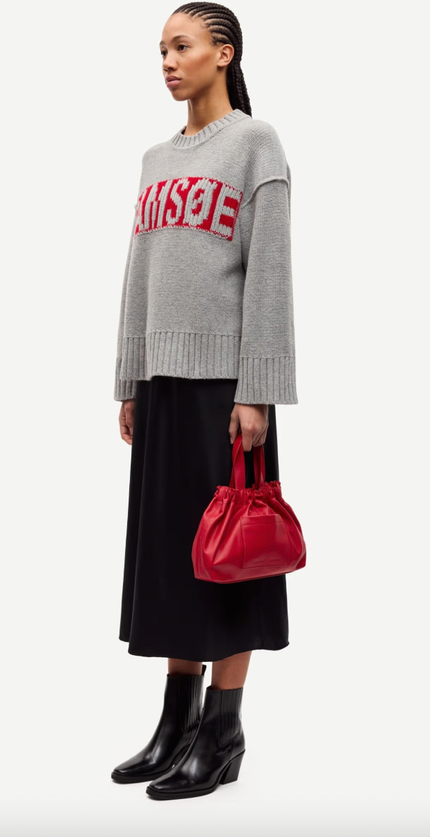 - Intarsia Samsøe-logo op de voorkant