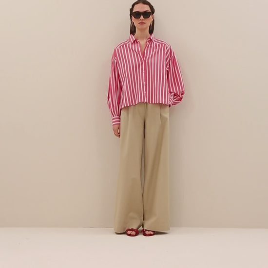 Sarah Short Stripe Blouse - Red Stripe