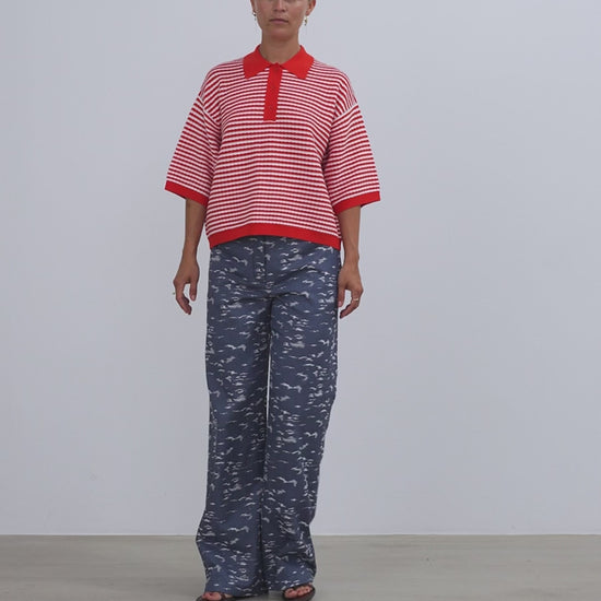 Polo Knit - Red / Creme Stripe