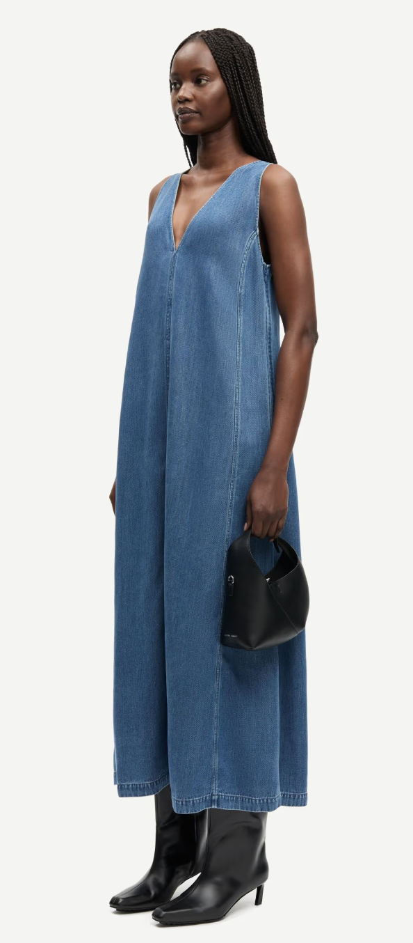 - mouwloze maxi-jurk van denim