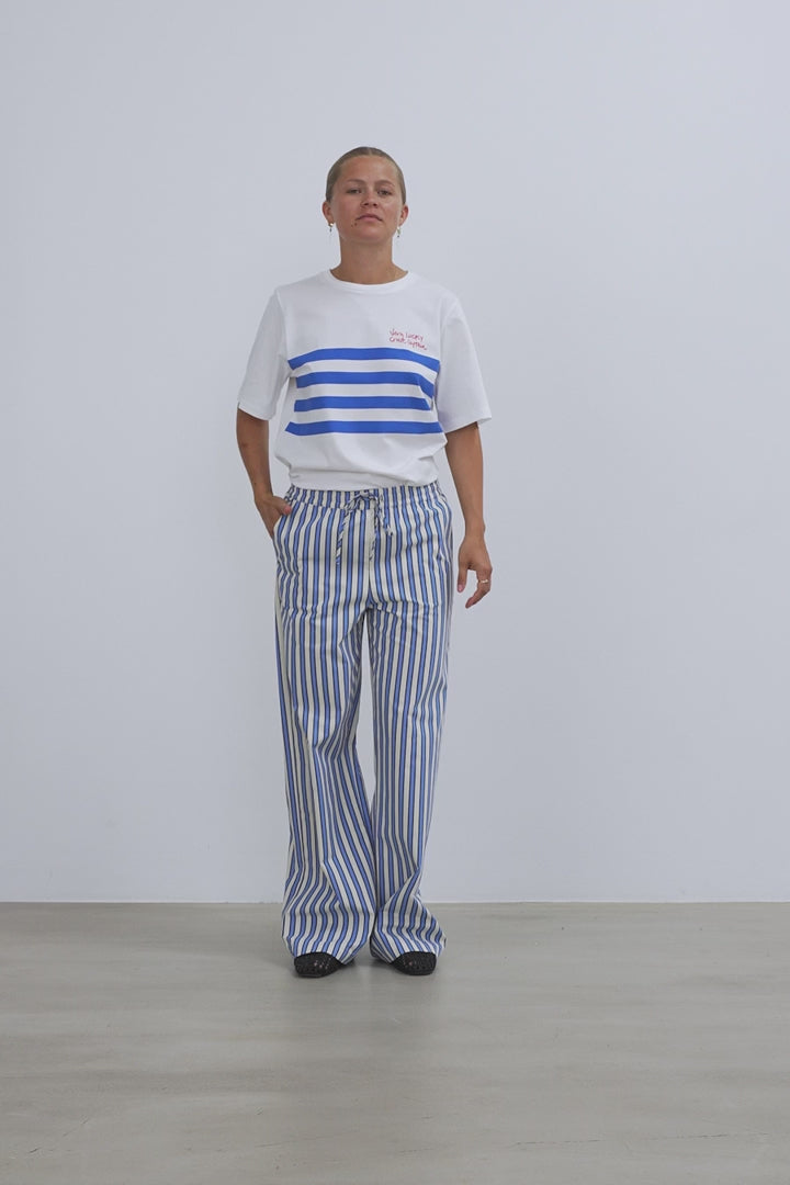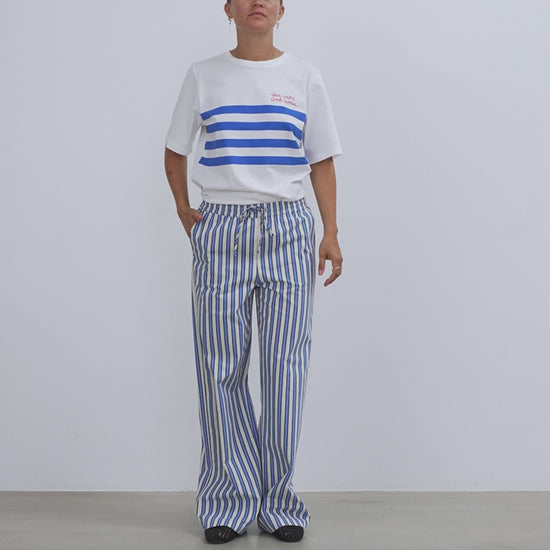 Yarn Dyed Striped Pants - Creme Blue Stripe